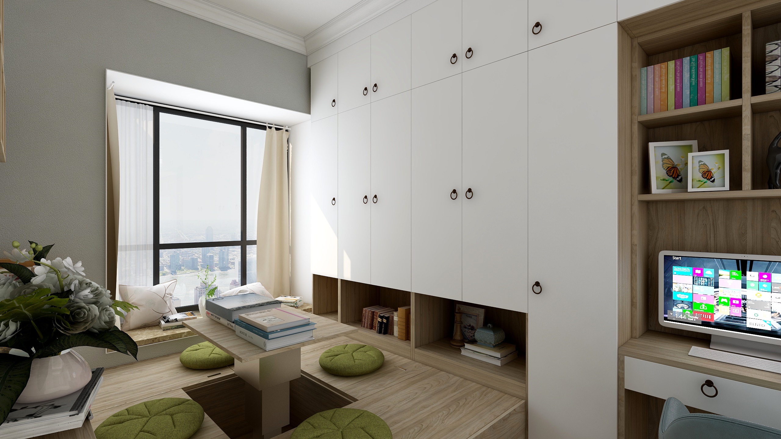 落地窗的設計,使整個室內變得更加明亮。周末宅在家里,陽光透過窗戶灑落進來,感受陽光的和煦,內心也變得平靜下來,選擇一本*近想讀的書,學著感受書中人物的情緒。也可以透過窗子看看外面風景,在城市的高處感受一覽重山小的闊達。