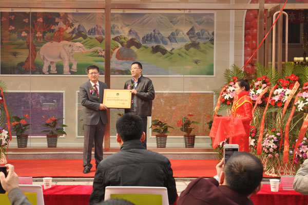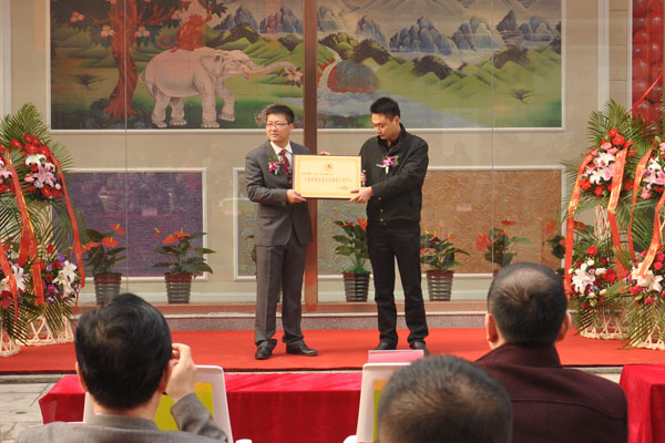 朱秘書長為涂裝藝術體驗館頒發“人居環境生態藝術涂料交流中心”銅牌