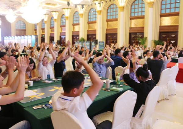 現場兩百余位經銷商以小組為單位,共分為13個小組,模擬公司組織架構,各小組有自己的公司名稱、口號、團隊展示,13個小組競爭PK,積分制的方式讓現場互動氛圍分外火熱。